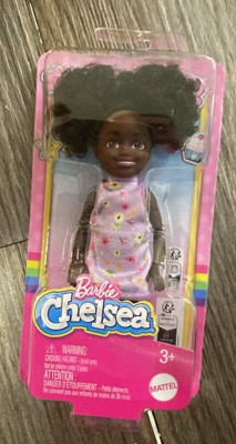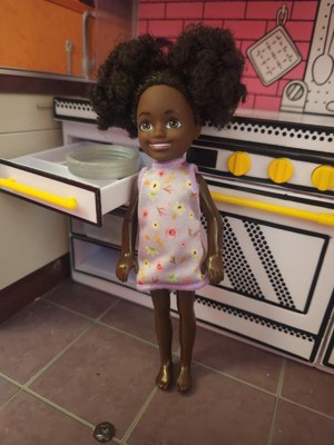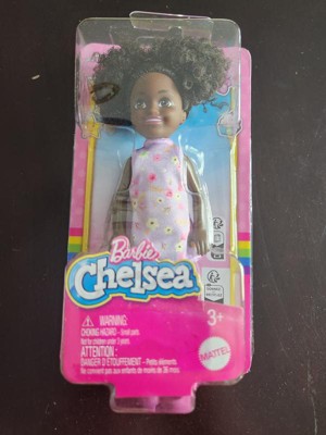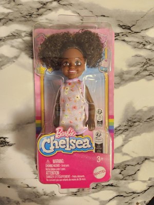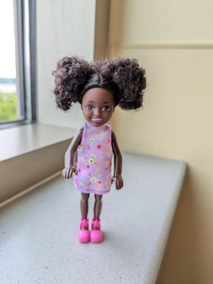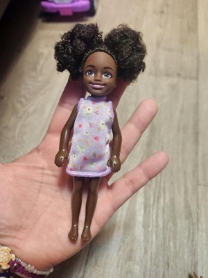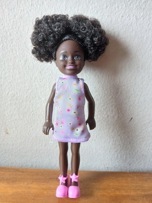 Barbie 6.3" Chelsea Small Doll Brown Hair/Brown Eyes Wearing Removable Purple Floral Dress with Space Buns