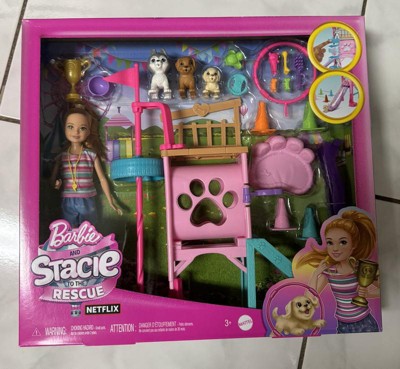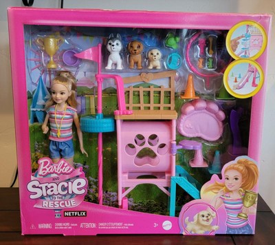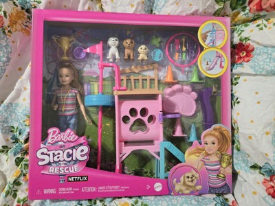 Barbie and Stacie to the Rescue Puppy Playground Playset with Doll, 3 Pet Dog Figures, & Accessories