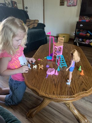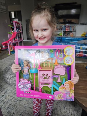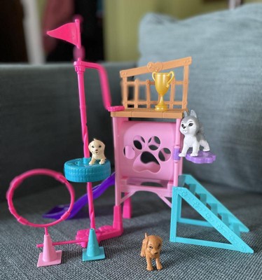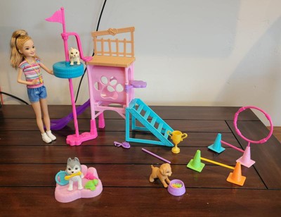 [This review was collected as part of a promotion.] This is such a fun set if your kid is a barbie world fan. There are so many fun features! Stacie comes with 3 puppies to play and train with all the accessories. My 4 year old loved setting up the puppy activites and acting out training them. I would say a loy of the tiny pieces like the jump bars are easily bendable and made need some adult help setting them in the cones. My daughter also had difficulty with the spinning pole, as it was not consistent and easily "activated" before ready. My daughter figured it out eventually and it didn't seem to bother her. There are many small pieces like the dog treats that you can insert in the pups mouths that may be easily lost. Overall it is a fun set with lots to do, it held my daughters attention and she continues to choose it to play with frequently. I recommend it!
