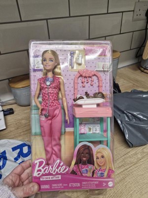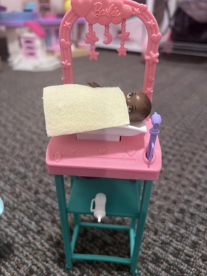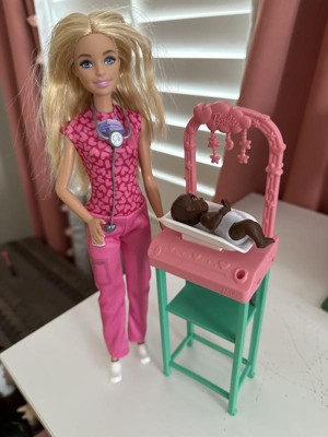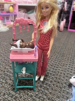 Barbie Baby Doctor Doll with Blonde Fashion 9.5" Doll, 1 Baby Doll, Furniture and Accessories
