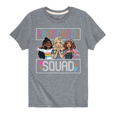 Barbie - Back To School - 1st Grade Squad - Toddler And Youth Short Sleeve Graphic T-Shirt - Step into the glamorous pink world of Barbie with our officially licensed graphic garments for the fashion-forward! Whether you dream of being a fashion designer, a mermaid princess, or a world-traveling explorer, our garments bring Barbie's world to life with vibrant colors and playful prints. Crafted with quality materials and attention to detail, each piece ensures comfort and durability for all-day play. Express your unique sense of style and imagination with our exclusive Barbie graphic apparel!