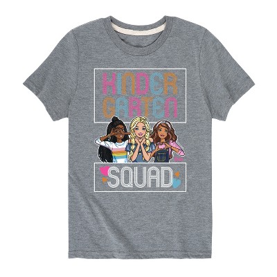 Barbie - Back To School - Preschool Squad - Toddler And Youth Short Sleeve Graphic T-Shirt - Step into the glamorous pink world of Barbie with our officially licensed graphic garments for the fashion-forward! Whether you dream of being a fashion designer, a mermaid princess, or a world-traveling explorer, our garments bring Barbie's world to life with vibrant colors and playful prints. Crafted with quality materials and attention to detail, each piece ensures comfort and durability for all-day play. Express your unique sense of style and imagination with our exclusive Barbie graphic apparel!