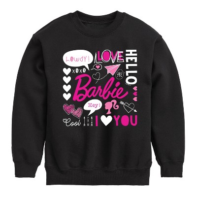 Barbie - Barbie Heart Grid - Toddler And Youth Crewneck Fleece Sweatshirt - Step into the glamorous pink world of Barbie with our officially licensed graphic garments for the fashion-forward! Whether you dream of being a fashion designer, a mermaid princess, or a world-traveling explorer, our garments bring Barbie's world to life with vibrant colors and playful prints. Crafted with quality materials and attention to detail, each piece ensures comfort and durability for all-day play. Express your unique sense of style and imagination with our exclusive Barbie graphic apparel!