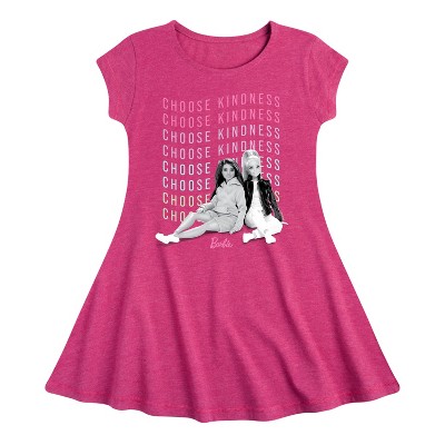 Barbie - Choose Kindness - Toddler And Youth Girls Fit And Flare Dress - Step into the glamorous pink world of Barbie with our officially licensed graphic garments for the fashion-forward! Whether you dream of being a fashion designer, a mermaid princess, or a world-traveling explorer, our garments bring Barbie's world to life with vibrant colors and playful prints. Crafted with quality materials and attention to detail, each piece ensures comfort and durability for all-day play. Express your unique sense of style and imagination with our exclusive Barbie graphic apparel!