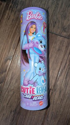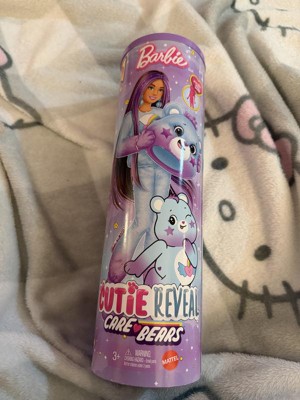 [This review was collected as part of a promotion.] She was excited to open the box and then remove the Care Bears head to find a Barbie underneath. We enjoyed opening the suprise packages. We were excited to see a collaboration. My daughter thought it was cute. The outfit is easy to get on and off. This Barbie has brought hours of enjoyment.