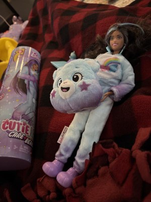 [This review was collected as part of a promotion.] Love this collaboration between Barbie and Care Bears. Nostalgic for parents who grew up with both. The doll doubles as two toys and daughter says the Care Bear is Barbie's Halloween costume, so play ideas are endless!