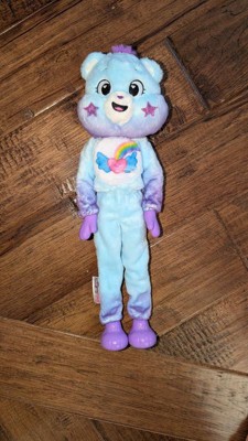[This review was collected as part of a promotion.] Great if you love care bears and barbies. She is very bendable, as she has joints in her knees and elbows. The shirt is reversible so she can wear the care bear outfit or the skirt and the top reversed. Her colored part of her hair can change color and you can make different designs in her hair with it. Overall my kids love this toy, and its durable.