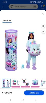[This review was collected as part of a promotion.] My daughter really loves this Care Bears Barbie Cutie Reveal doll and has been bringing it everywhere with her! It's fun to open and reveal your doll as well as the secret packages that hold accessories and clothes. The doll is well made and the ankles are jointed. It is also fun that the highlights in her hair change color with water! A great toy!
