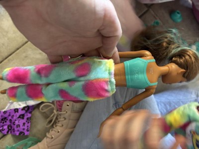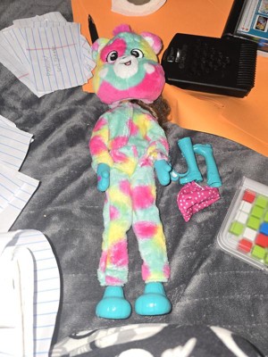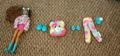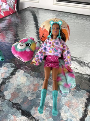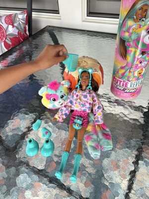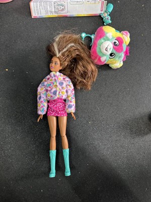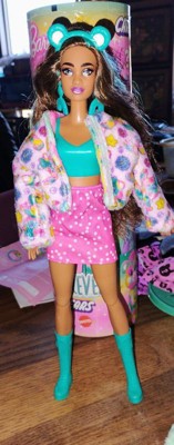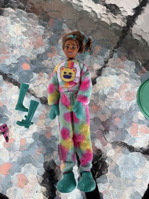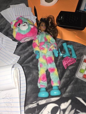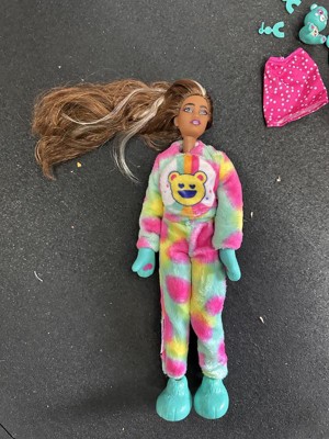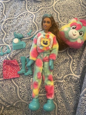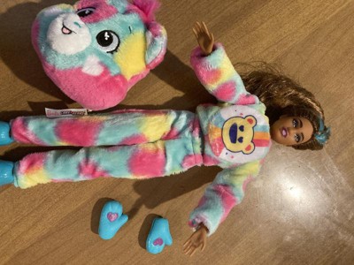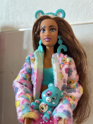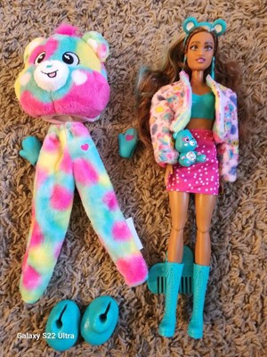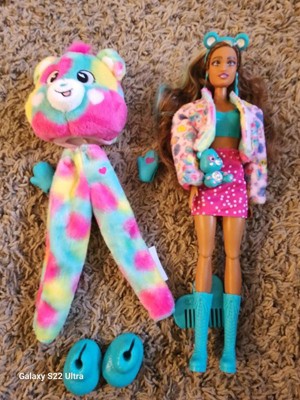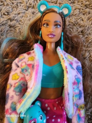 [This review was collected as part of a promotion.] What a neat barbie! The furry care bear outfit was adorable and the outfit that came with it was a fun addition. The splash of color in her hair was also very cool. My granddaughter will not put the barbie down.