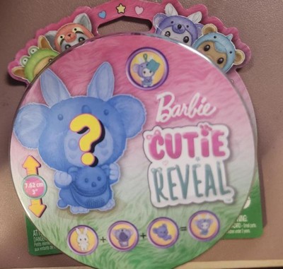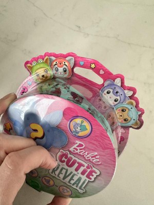 Barbie Cutie Reveal animal-costumed themed pets deliver an unboxing experience full of surprises -- five of them! Discover a Kitten in a Red Panda costume, a Dog as a Frog, a Teddy Bear as a Dolphin or a Bunny as a Koala. Open the surprise bags and find an even smaller, cuter pet with a carrier that attaches to the 3-inch Cutie Pet. Use the clip to take all the cuteness on the go. Discover even more wow with a color-change transformation. Which Cutie Reveal Pet will you reveal? Kids can collect them all to mix and match accessories and expand the possibilities! Each sold separately, subject to availability. Colors and decorations may vary.
