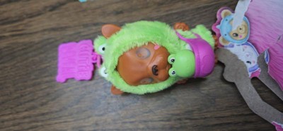 [This review was collected as part of a promotion.] What is cuter than a small animal... a small animal in a plush costume. And how could it get any cuter?! Add a tiny baby animal in a baby carrier. I gave this to my child on a airplane as a surprise (to help maintain good behaviour) and it was a success! They loved opening the mystery bags and dressing their new lovey. We will be getting another so that Greeny can have a friend!