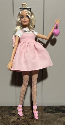 [This review was collected as part of a promotion.] Barbie is so pretty. My daughter LOVES her long beautiful platinum hair. Her tights are gorgeous, and she has a cute little purse and sunglasses. She's wearing fun strappy pink heels. My daughter can’t get enough of the various textures of all her clothing and accessories. The clothing is made very well all seams are spot on. Any Barbie lover would be thrilled to have her.