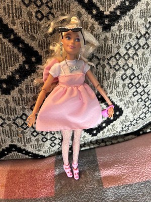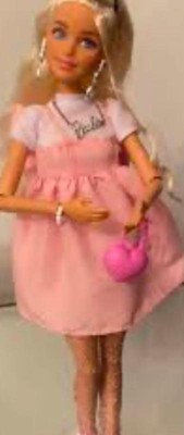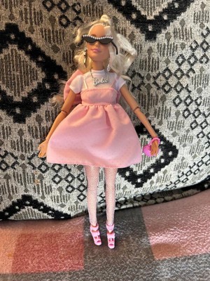 [This review was collected as part of a promotion.] Modern and trendy Barbie doll. Loved her style and all the accessories. She comes with cool shades, silver earrings, silver name necklace, bracelet, heart shaped purse and pink heels. Her outfit is so stylish and her hairdo is cool. The doll is articulated and she's beautiful!