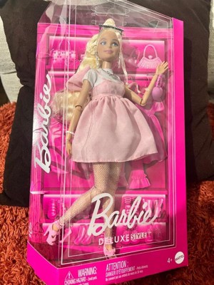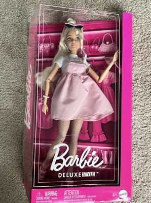 This Barbie Deluxe Style with blonde hair is so much nicer in person; the photos don’t do her justice. I am an adult collector and love every detail of this doll. I was planning to take her out of the box but decided after seeing her in person that I will be displaying her in her box. Her pose and the hot pink background really compliment her light pink dress. I recommend her to collectors as well as kids!