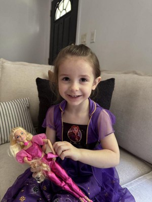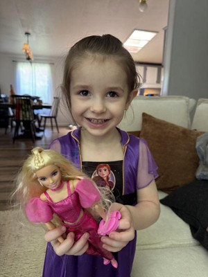 [This review was collected as part of a promotion.] My 5yo (almost 6) daughter has just recently gotten into Barbie's. She was excited to get this one in the mail as it looks "like her" with long Blonde hair. She loved the metallic pink outfit and that she had a matching purse.