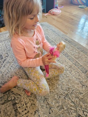 [This review was collected as part of a promotion.] Love the pink, it reminds me of Barbie from the 80's and 90's. My instantly fell in love with her. The only thing is her pants got sratched right away so you need to be careful with the fabric. Otherwise she is perfect for any child.