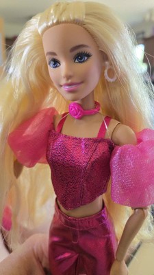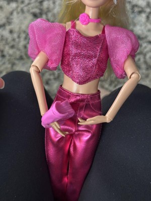 [This review was collected as part of a promotion.] I am beyond impressed! Right out of the box, she radiates glam with her bold, fashion-forward outfit. The deep fuchsia metallic pants and matching glittery top with puffed sleeves give serious pop star vibes, and the addition of the pink rose choker is a fun, stylish touch that makes her stand out.