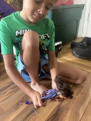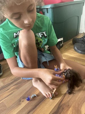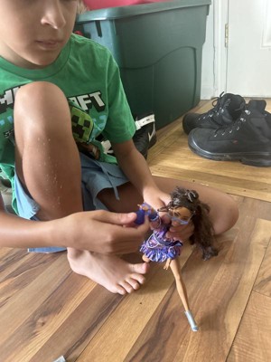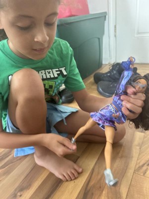 [This review was collected as part of a promotion.] My daughter was so excited to play with this lovely brunette doll in a sparkly purple outfit. Her long hair is fun to style. I just wish the dress was styled in one piece instead of mid drift attire. A fun doll that she’ll play with often!