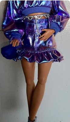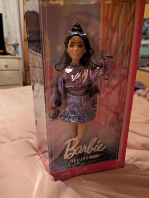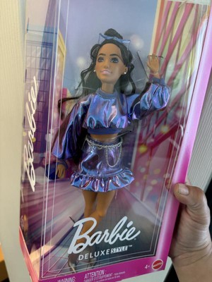 Barbie Deluxe Style Fashion Doll #7 in Metallic Blue Top and Skirt with Accessories, Brunette