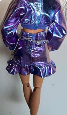 [This review was collected as part of a promotion.] This Barbie Deluxe Style Doll is a showstopper! The metallic blue top and skirt combo is absolutely stunning, and the wavy brown hair adds a touch of sophistication. The accessories are the icing on the cake - the silvery jewelry, crystal handbag, and sunglasses all come together to create a truly glamorous look. Overall, I'd give this Barbie 5/5 stars for her fabulous style, gorgeous accessories, and high-quality design. She's a must-have for anyone who loves fashion and glamour!