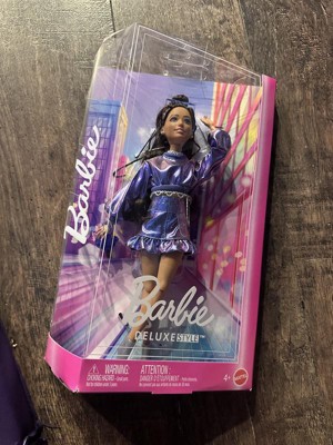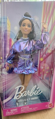 [This review was collected as part of a promotion.] The Barbie Deluxe Style Doll was a good addition to our Barbie doll collection. She has articulation and her own style and looks compared to most Barbies. She has slightly darker skin tone, dark hair and an original purple, metallic outfit. She is about same size as a "normal" Barbie and has been played with in Barbie cars, the Dreamhouse, and along side Chelseas, Barbies, Kens and Stacys.