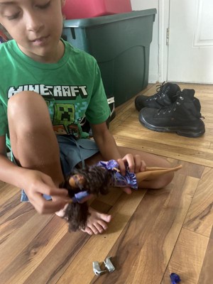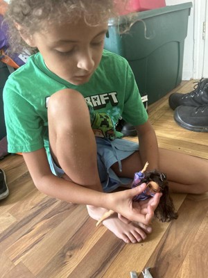 [This review was collected as part of a promotion.] Love the shiny purple outfit. Unfortunately the dog got a hold of her shoes 😐. My daughter can never leave the hair alone, but it was styled really cute in a half up style. The bending wrists and legs make it easier to play with.