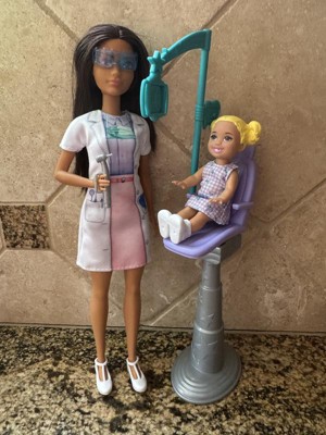 [This review was collected as part of a promotion.] My daughter loves playing with this Barbie and the dental chair and “patient”. The dolls also hold up very well to manipulation and being posed over and over, which is great. One issue is that some of the accessories are very small and easily lost. We wish the shoes were maybe not removable and that the outfit was longer/more realistic. Overall, the toy is a hit, and she loves that it has multiple ways to play.