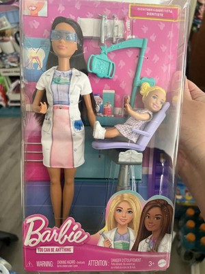 Barbie Dentist Brunette 11" Fashion Doll, 1 Kid Doll, Medical Doctor Furniture & Accessories