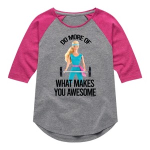 Barbie - Do What Makes You Awesome - Toddler And Youth Girls Raglan Graphic T-Shirt - Step into the glamorous pink world of Barbie with our officially licensed graphic garments for the fashion-forward! Whether you dream of being a fashion designer, a mermaid princess, or a world-traveling explorer, our garments bring Barbie's world to life with vibrant colors and playful prints. Crafted with quality materials and attention to detail, each piece ensures comfort and durability for all-day play. Express your unique sense of style and imagination with our exclusive Barbie graphic apparel!