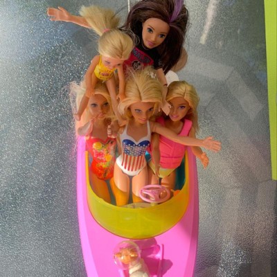 - With a colorful design and room for 3 dolls, this Barbie speedboat sparks endless sea-inspired stories (other dolls sold separately)
