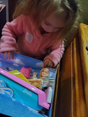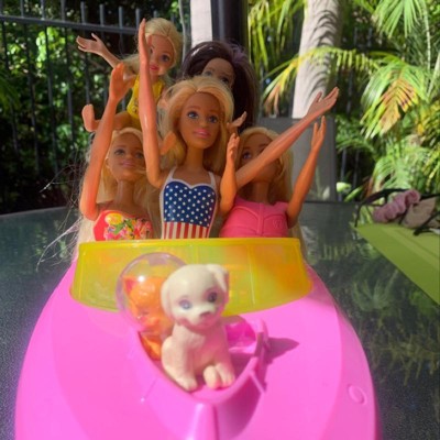 - Inspire travel adventures with Barbie doll, her pet puppy and a boat that floats in water!