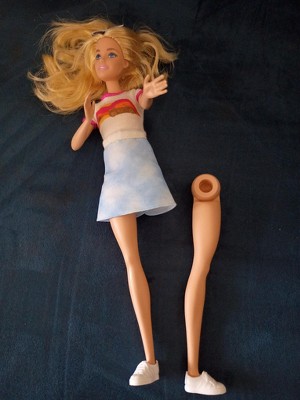 Sorry to hear Barbie's foot broke. For assistance, please contact our Consumer Services team. They can be reached by phone at 1-800-524-8697 and are available Monday - Friday, between 9a.m. – 6p.m. EST.