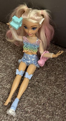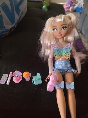 [This review was collected as part of a promotion.] The doll is wonderful! The accessories all open for more realistic play with the makeup, cup and camera. Love the butterfly detail! Doll bends to sit, stand and rollerskate! The bag seems like it should open but couldnt figure it out.