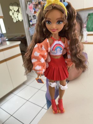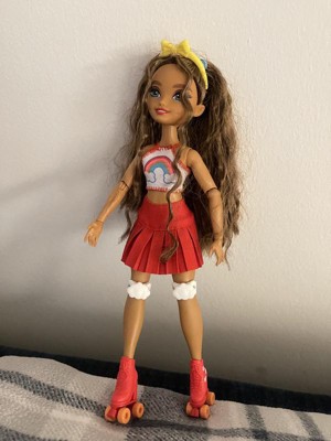 [This review was collected as part of a promotion.] Such a cute doll. Love the attention to detail and bright colors. Comes with cute accessories, like a camera, cell phone, cookie bag, purse, headband, roller skates, video game handheld console and knee pads. I love that her knees bend and the skates wheels actually move. The attention to detail in her face is wonderful. You can even see dimples. Love her hair and outfit.