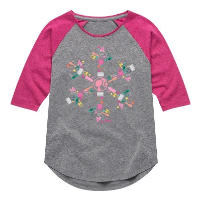 Barbie - Easter - Brushed Flowers - Toddler And Youth Girls Raglan Graphic T-Shirt - Step into the glamorous pink world of Barbie with our officially licensed graphic garments for the fashion-forward! Whether you dream of being a fashion designer, a mermaid princess, or a world-traveling explorer, our garments bring Barbie's world to life with vibrant colors and playful prints. Crafted with quality materials and attention to detail, each piece ensures comfort and durability for all-day play. Express your unique sense of style and imagination with our exclusive Barbie graphic apparel!
