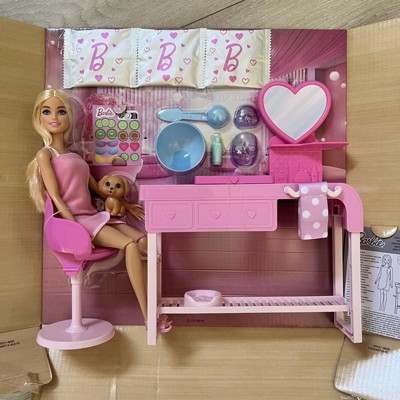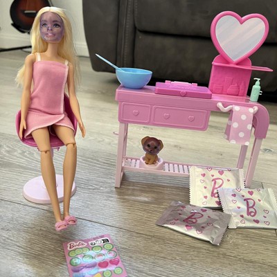 Barbie Face Mask Toy Playset & Doll with 10+ Spa Accessories Including 3 Powder Packs to Make Dough Masks