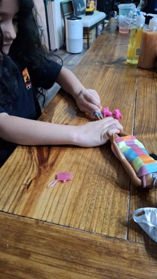 [This review was collected as part of a promotion.] This doll is beautiful and wears fun colors. I love the detailing on her hair. My daughter is a big fan of Barbie, though she often has frustration over some of the small items that don't quite fit into "Barbie's hands". This wristlet exceeded our expectations and allowed her to circumvent that pain point. I loved the detailing on showing Barbie's muscles and that she's strong! My daughter's only wish that the legs were bendable so she could go driving in her "RV". Without bendable legs, she doesn't quite fit.