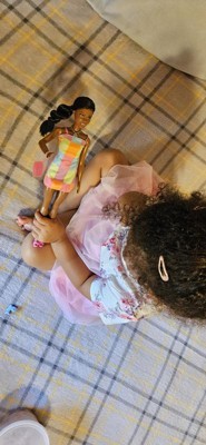 [This review was collected as part of a promotion.] I loved Barbie’s beautiful skin tone. Her little purple was the perfect size for little lands. The dress was hard for my daughter to take on and off was my only complaint. I am sure it will be easier when her fingers get stronger.