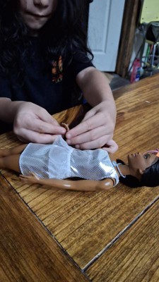 [This review was collected as part of a promotion.] Barbie is very kid friendly comes in a vary multi color dress with some clear blue heels to match it’s very durable easy to take the clothes on and off hair do not shed my child and I were playing dress up with Barbie’s and adding this disbelief beautiful doll to her collection was a gem