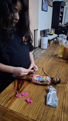 [This review was collected as part of a promotion.] This is a fun Barbie set that includes Brooklyn and an outfit change. The clothes are cute and seem well made. They were easy to change for a new look. The accessories, a necklace, bracelet and purse are also a nice addition and fun to mix and match.
