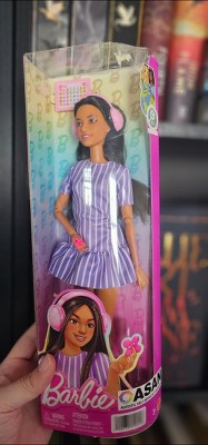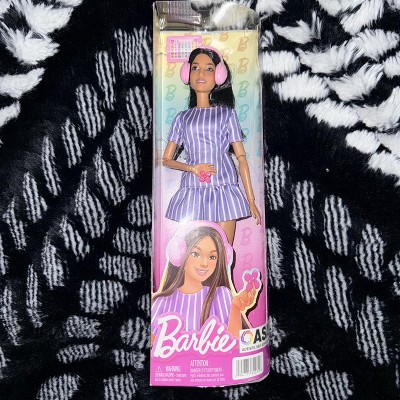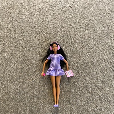 Barbie Fashionistas Doll #245 in Purple Striped Dress, Autistic Barbie with Accessories