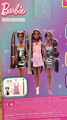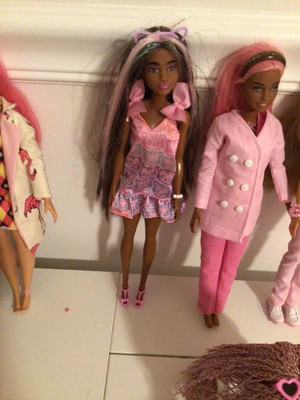[This review was collected as part of a promotion.] My little one is currently obsessed with this Barbie doll! This doll has extra long brown hair with a shimmering silver and pink highlights. It also comes with a multicolored hair extension clip that adds even more fun highlights to the Barbie’s hair. Other hair accessories included are hair ties, headband, hair clips, and a comb. An extra dress and heels are also included in this Barbie Fun & Fancy Doll set. I couldn’t be more pleased with the quality of this doll. The doll is well made and her makeup is very nice and detailed. My girl loves Barbie’s clothing considering the dress and headband are cat themed. The doll’s hair accessories are fun and allow my girl to explore her interactive play. Overall a great doll for any Barbie lover and I highly recommend.