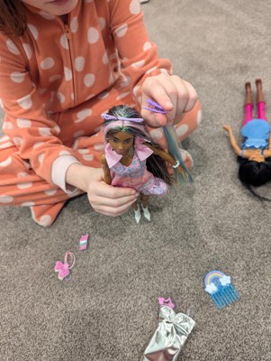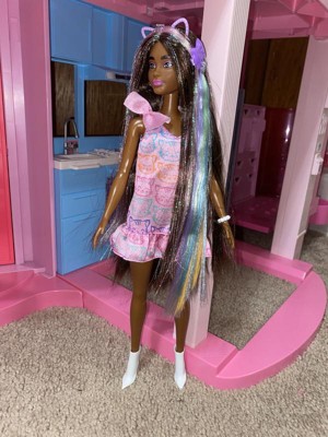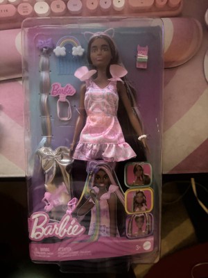 [This review was collected as part of a promotion.] Adorable Barbie Fun & Fancy! This Barbie is so vibrant and inclusive! My child played for several hours mixing and matching between dresses, shoes and hair accessories! It was fun to see how creative she could get! With the long hair, pink sparkly strips and the rainbow extension any child would love this Barbie!