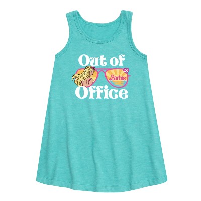 Barbie - Girls All Together - Toddler and Youth Girls A-line Dress - Step into the glamorous pink world of Barbie with our officially licensed graphic garments for the fashion-forward! Whether you dream of being a fashion designer, a mermaid princess, or a world-traveling explorer, our garments bring Barbie's world to life with vibrant colors and playful prints. Crafted with quality materials and attention to detail, each piece ensures comfort and durability for all-day play. Express your unique sense of style and imagination with our exclusive Barbie graphic apparel!