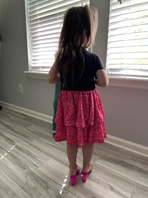 Wow, this dress is the ultimate girly girl dress! It is a super cute Barbie dress and my little one is obsessed!! She is a big girl, so I did need to go up a size. She wears her dress with leggings and boots.