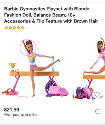 Barbie Gymnastics Playset with Blonde Fashion Doll, Balance Beam, 10+ Accessories & Flip Feature with Blonde Hair