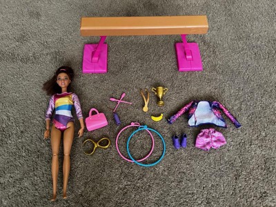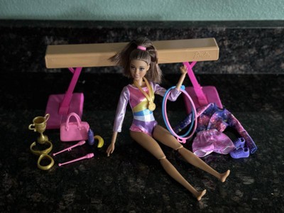 [This review was collected as part of a promotion.] My daughter loves this Barbie. It has a ton of accessories including a trophy, medal, hula hoops, gym bag and much more. The Barbie can practice on the balance beam which is easy to set up. They only down side is all of the accessories are tiny and can be easily lost.