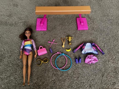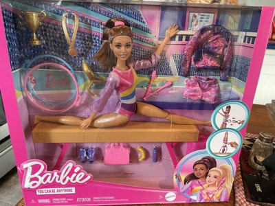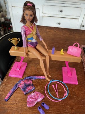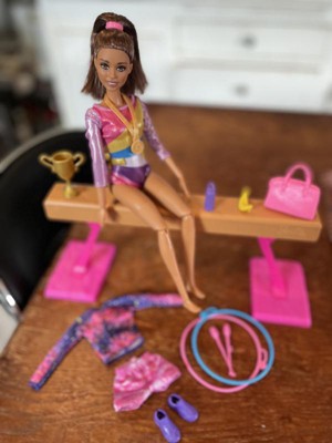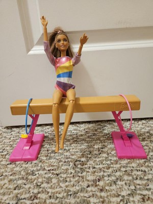 Barbie Gymnastics Playset with Brunette Fashion Doll, Balance Beam, 10+ Accessories & Flip Feature