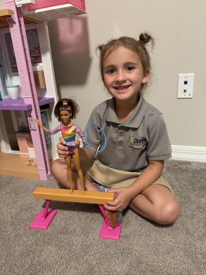 [This review was collected as part of a promotion.] My daughter is really into gymnastics and cheer so we thought this was the perfect Barbie for her! She loves it! She had set it up and do e all kinds of gymnastics tricks with it! We love that it came with so many accessories also! She can make it do flips and cartwheels and also use the hula hoops to make her own routines up for Barbie!