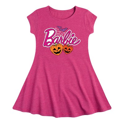 Barbie - Halloween Barbie - Toddler And Youth Girls Fit And Flare Dress - Step into the glamorous pink world of Barbie with our officially licensed graphic garments for the fashion-forward! Whether you dream of being a fashion designer, a mermaid princess, or a world-traveling explorer, our garments bring Barbie's world to life with vibrant colors and playful prints. Crafted with quality materials and attention to detail, each piece ensures comfort and durability for all-day play. Express your unique sense of style and imagination with our exclusive Barbie graphic apparel!